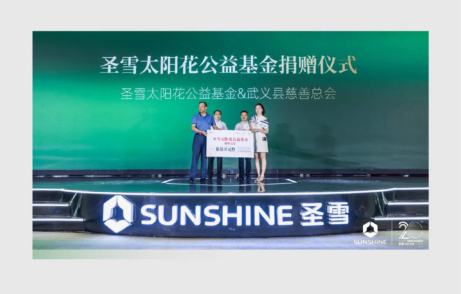 The starting capital of the Sunshine Sunflower Public Welfare Fund is RMB 1 million, and the first donation of 500,000 yuan will be used for the poverty alleviation project of the Wuyi County Charity Association. In the future, the Sunflower Public Welfare Fund will continue to play a positive role in social disasters, green environmental protection, health, education and other public welfare undertakings, and provide excellent Employees’ children provide scholarships and assist enterprise employees who encounter temporary difficulties.