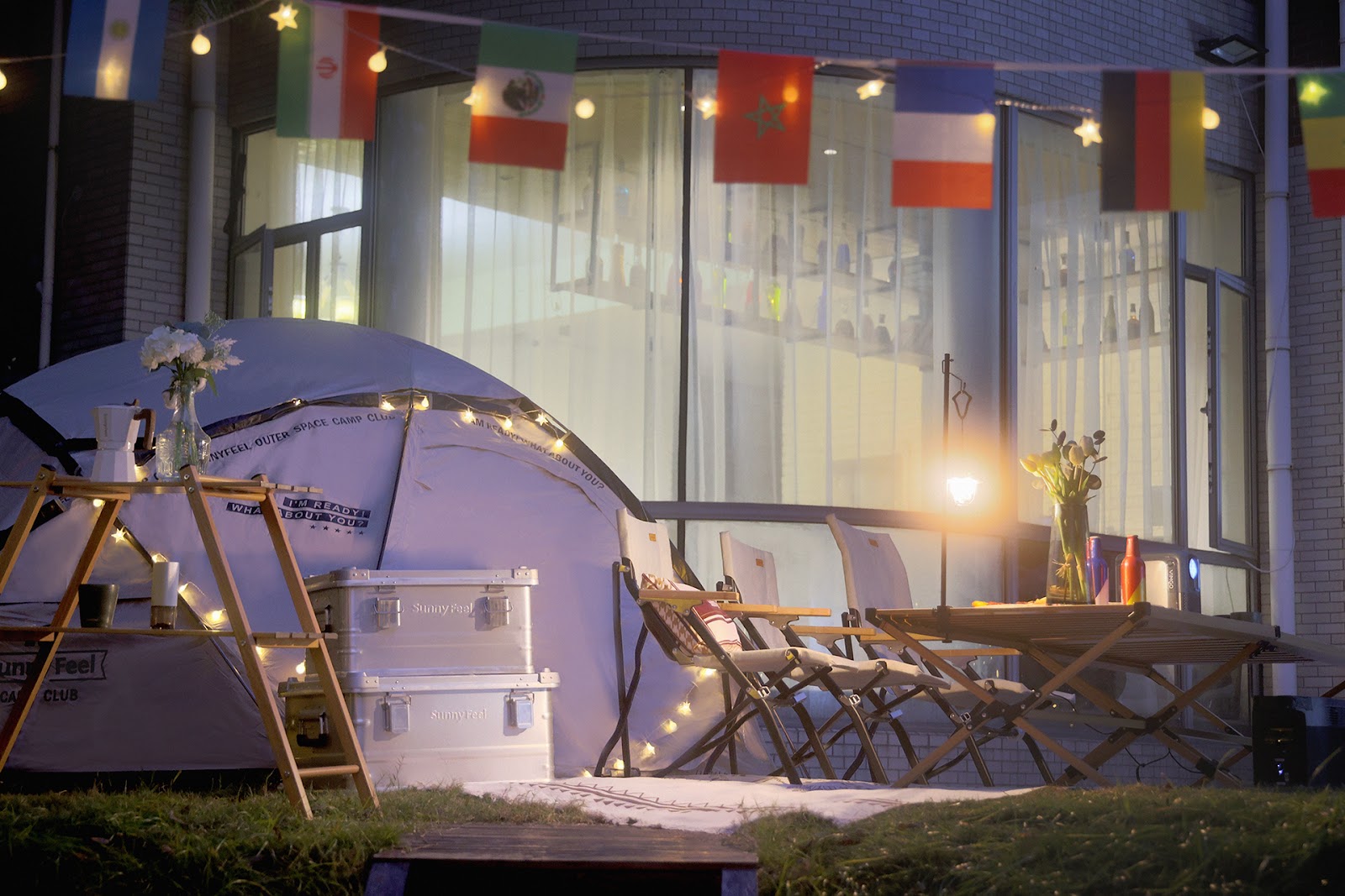 The best part of this idea is that you can choose the most affordable but long-lasting pieces of furniture, like foldable chairs and steel outdoor furniture. You can also find fake campfires that light up to make the experience more authentic for your child.