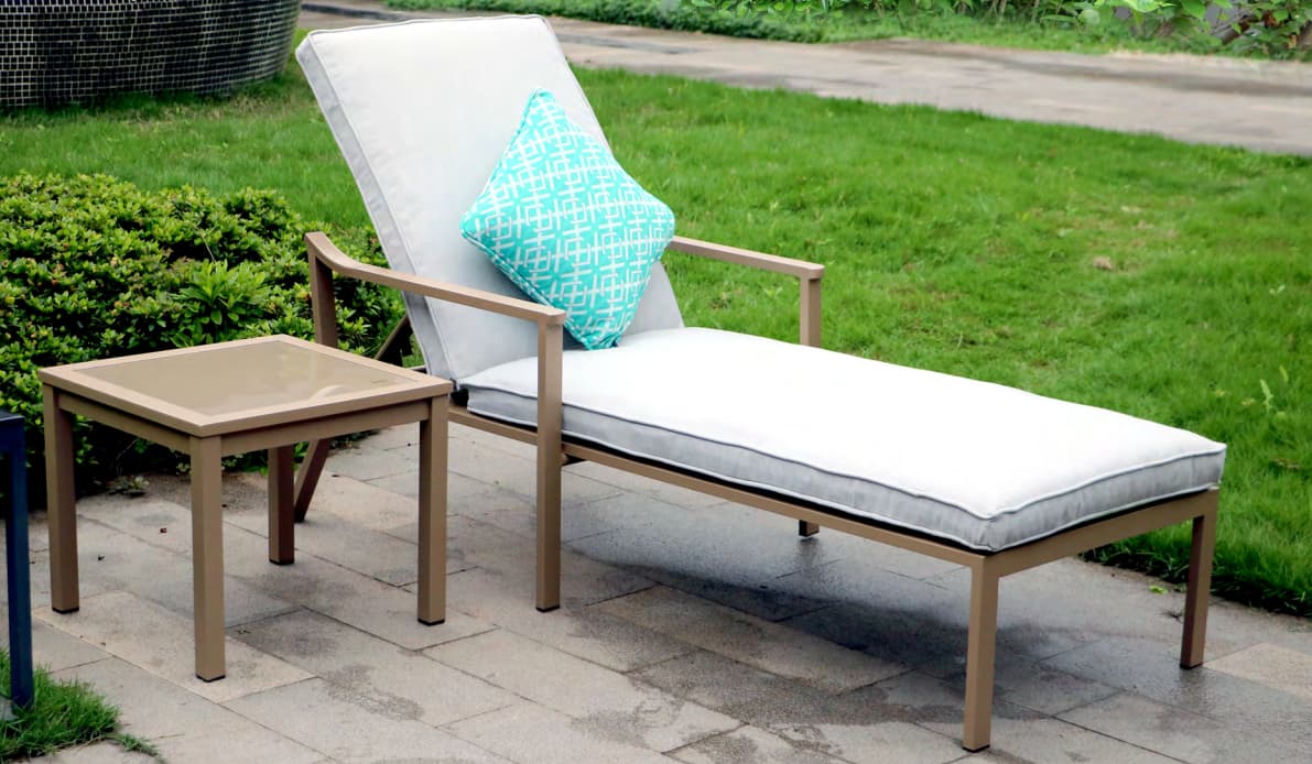Outdoor chaise lounges are a lovely way to enjoy the breeze and catch a few rays. They offer variable sitting positions and can double as a couch if need be.