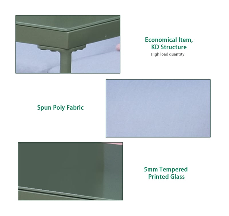 Powder-coated steel frame provides strong support and rust resistance for outdoor use. Spun poly fabric is soft yet durable, designed specifically for outdoor performance. Tempered glass tabletop is smooth, safe, and easy to wipe clean after outdoor use. Complete seating group creates a comfortable lounge zone for family and guests.