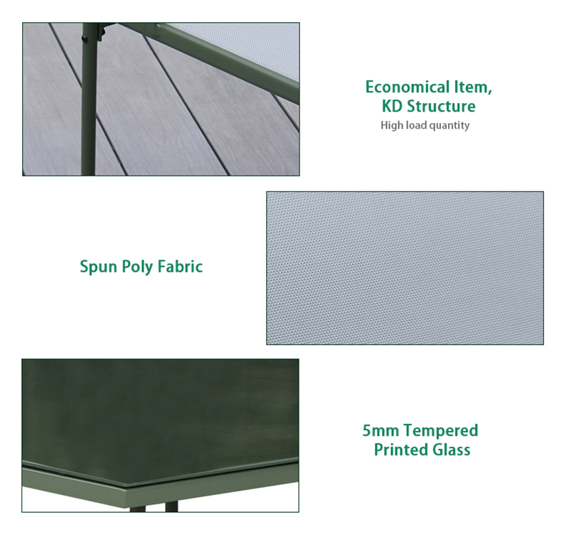 Powder-coated steel frame provides strong support and rust resistance for outdoor use. Spun poly fabric is soft yet durable, designed specifically for outdoor performance. Tempered glass tabletop is smooth, safe, and easy to wipe clean after outdoor use. Complete seating group creates a comfortable lounge zone for family and guests.
