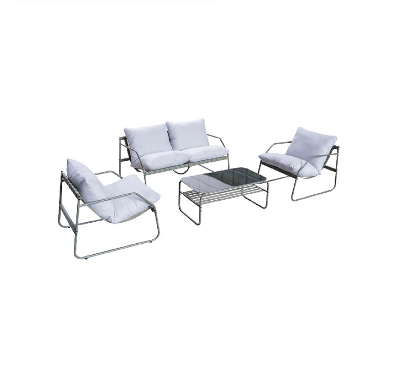 4-Piece Outdoor Sofa Set Including Tempered Glass Table – Durable Steel Frame and Spun Poly Fabric