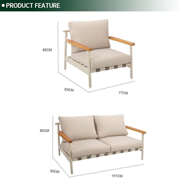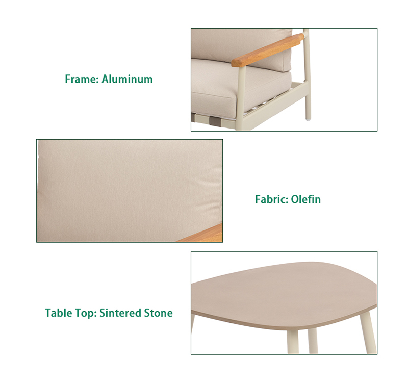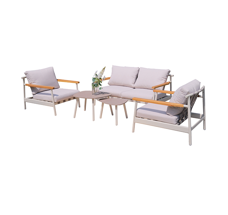 5-Piece Aluminum Frame Outdoor Lounge Sofa Set AF6417 with Olefin Fabric and Dual-Level Tables