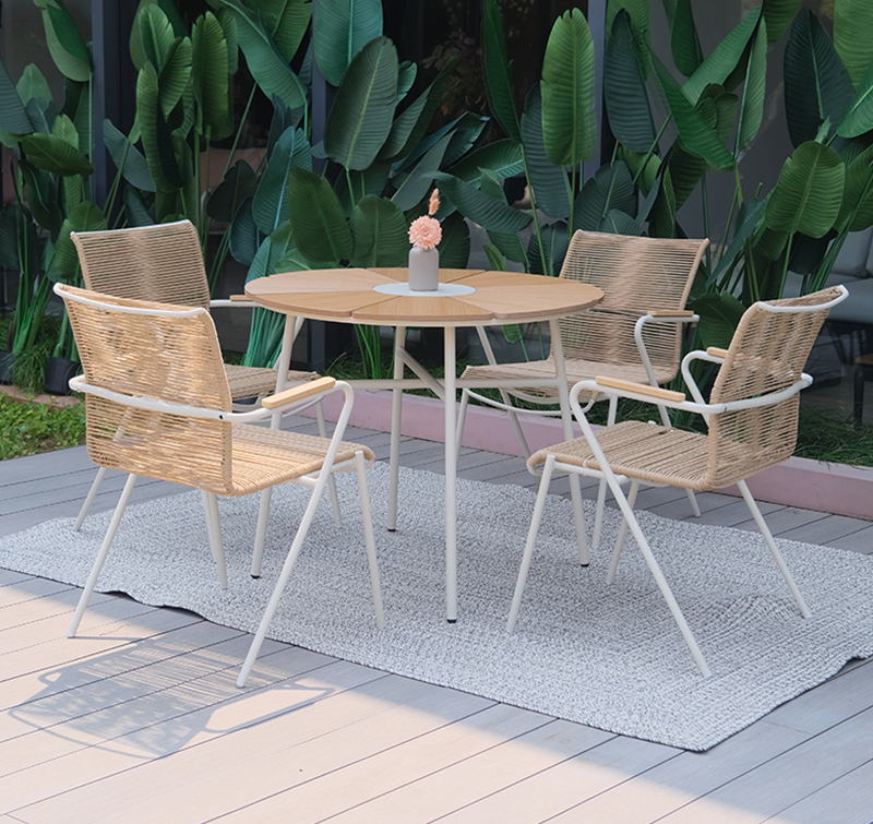 Complete 5-Piece Outdoor Dining Set with PE Rattan Tabletop and Sturdy Steel Frame