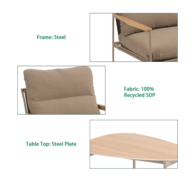 Powder-coated steel frame provides strong support and rust resistance for outdoor use. Eco-friendly recycled fabric supports more sustainable outdoor living choices. Natural slate tabletop introduces a premium, organic focal point for the patio.