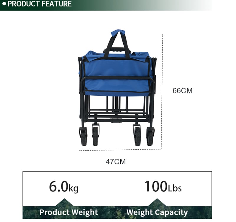 Compact Folding Wagon, 100kg Capacity & Auto-Retract Handle