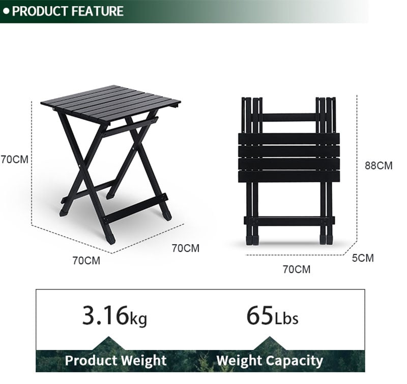 Settle in anywhere with the Custom Portable Aluminium Roll Picnic extendable Folding Outdoor Hiking Camping tables. Lightweight aluminum frame, supports up to 120 lbs for lasting comfort. Thoughtful touches include quick-fold design. Packs into the included carry bag for grab-and-go convenience. Net weight 2.0 kg. Ideal for camping, events, patios and parks.