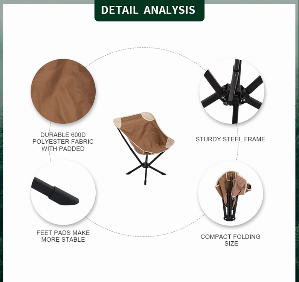 Settle in anywhere with the Customized Lightweight Aluminum Oxford Quick Open Fishing Moon Chair Camping Folding Chair. Lightweight aluminum frame, supports up to 300 lbs for lasting comfort. Thoughtful touches include quick-fold design and compact fold. Packs into the included carry bag for grab-and-go convenience. Net weight 2.2 kg. Patterns and colors can be customized.