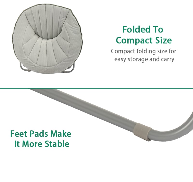 Padded cusion for soft sit feeling. Stable steel frame Easy to fold and open with compact folding size.