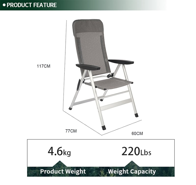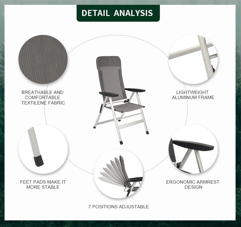 Folding RV Caravan Chair with 7 Positions and Luxurious Textilene Fabric