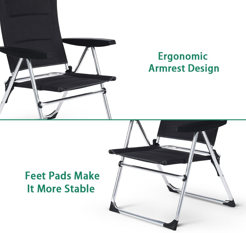 5 Position Adjustable Portable Aluminum Lightweight Outdoor Folding Camping Chair with Armrest