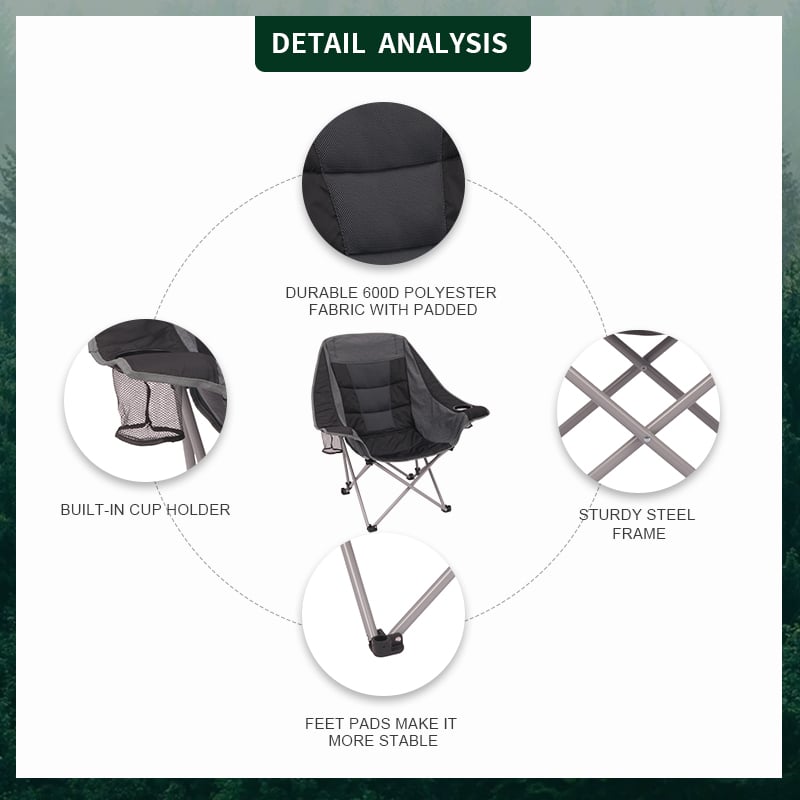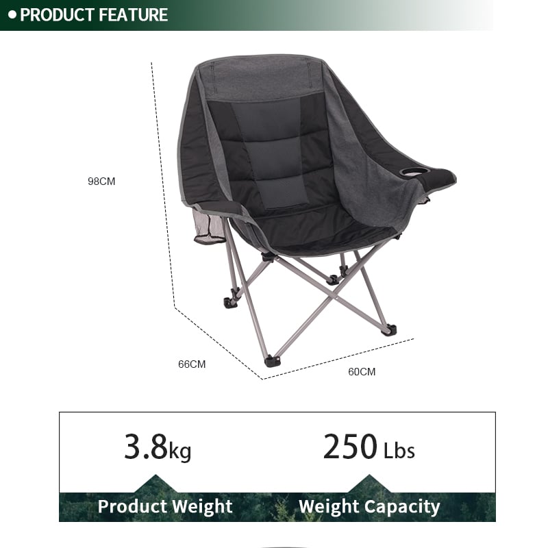 Oversize Padded Moon Leisure Portable Stable Comfortable Folding Chair for Camping
