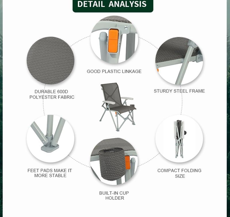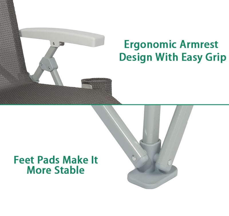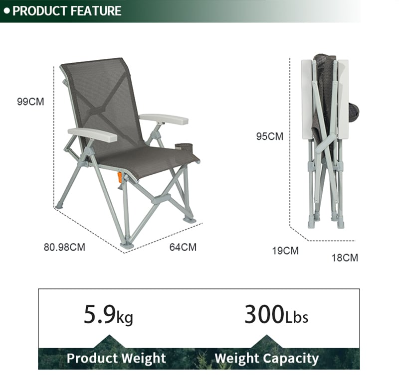 Different from the other folding chair, this chair has a novel design. Made of lightweight aluminum frame, rustproof and all-weather proof, and breathable and comfortable textilene fabric. Can hold up to 120 kg, the chair is made to withstand a lifetime of enjoyment. No assembly needed, easy to open and fold. It can be folded in a very compact size for easy transportation and storage.