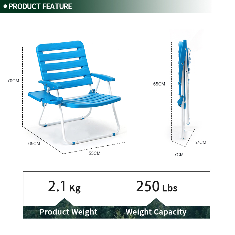 PP Board Outdoor Lightweight Plastic Folding Beach Chair with Side Table