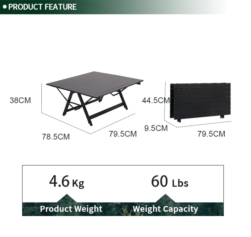 Sturdy Aluminum Camping Table with 3 Height Settings, 30kg Load Capacity