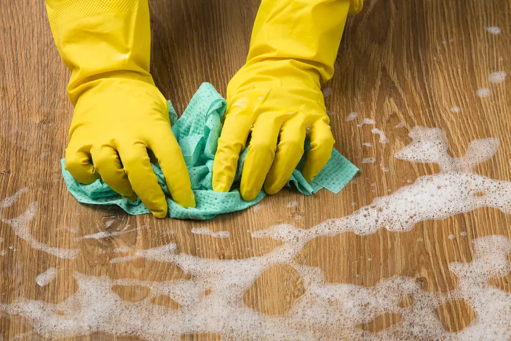 Harsh chemicals can damage the wood and its natural oils, so it’s best to steer clear of them. Remember, always scrub with the grain of the wood for the best results.