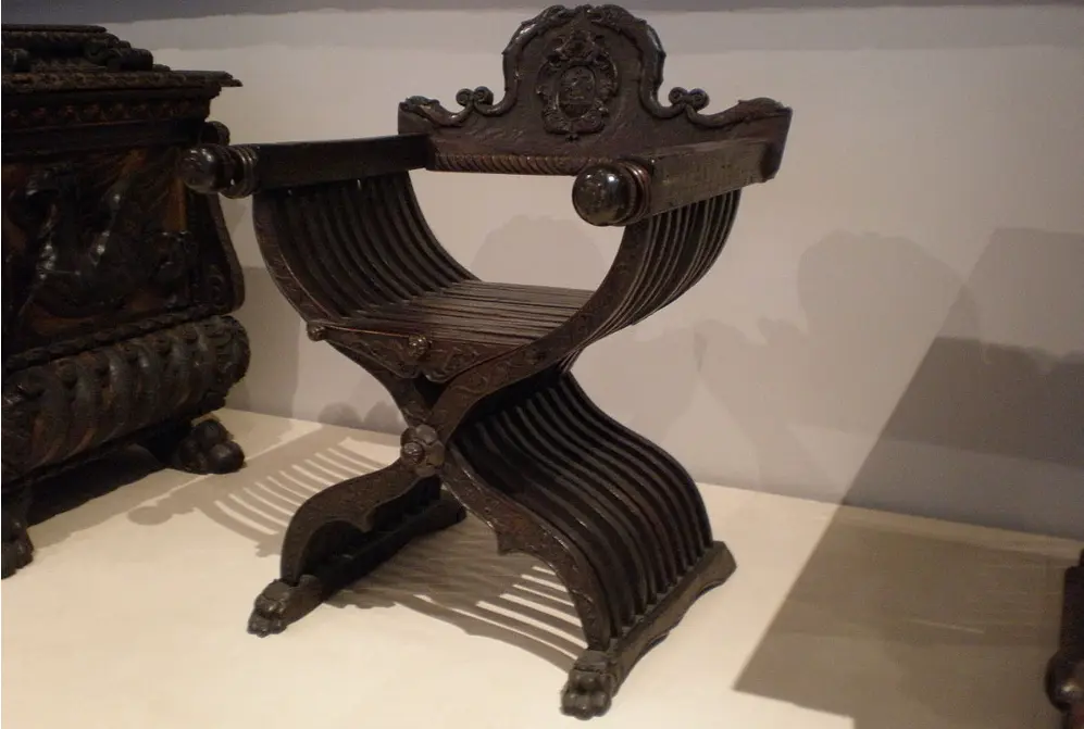 The curule chair, a symbol of political power and authority, was a type of folding chair used by high-ranking officials and magistrates during public events and ceremonies.
